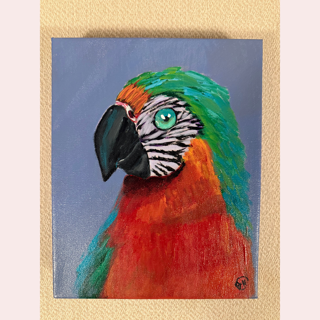 Beautiful acrylic bird painting in vibrant colors. Check out that eye!! 8x10 gallery wrapped canvas.