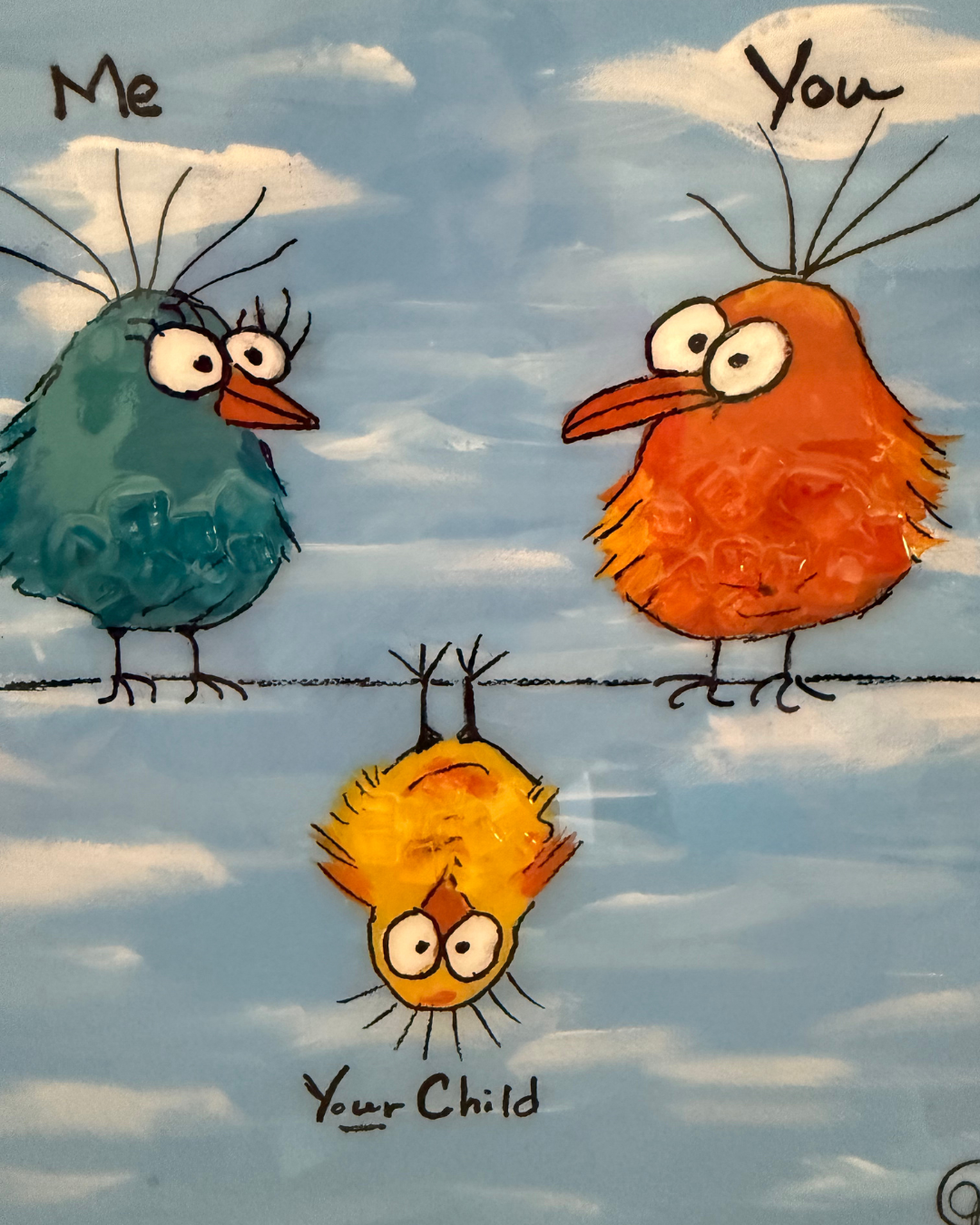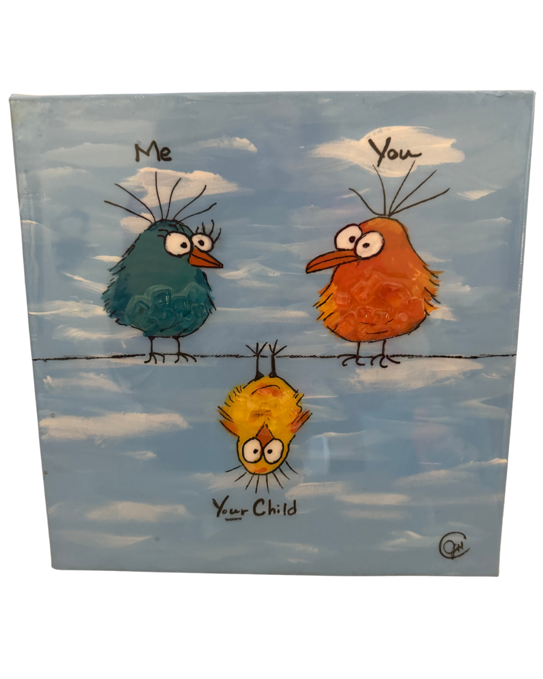 "Your Child" is a cute acrylic painting with glass accents that is SO like our families, right?